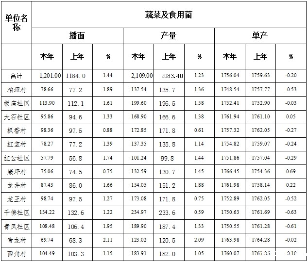板庙镇2025年第一季度蔬菜及食用菌生产情况