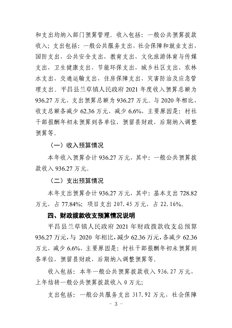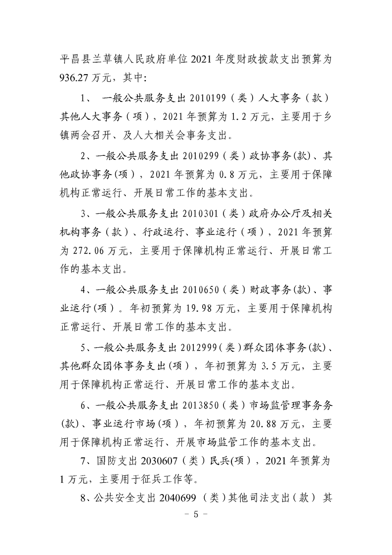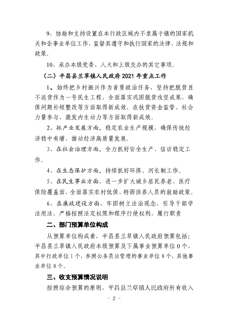 开云体育足球官网兰草镇人民政府2021年部门预算公开