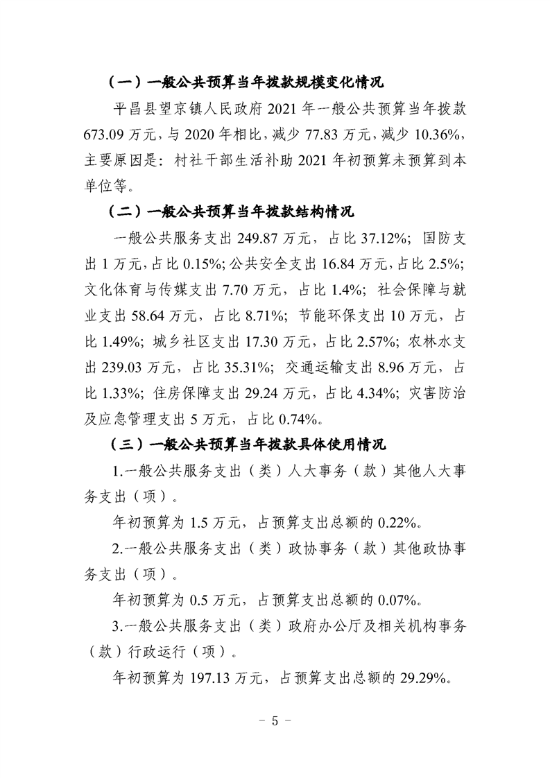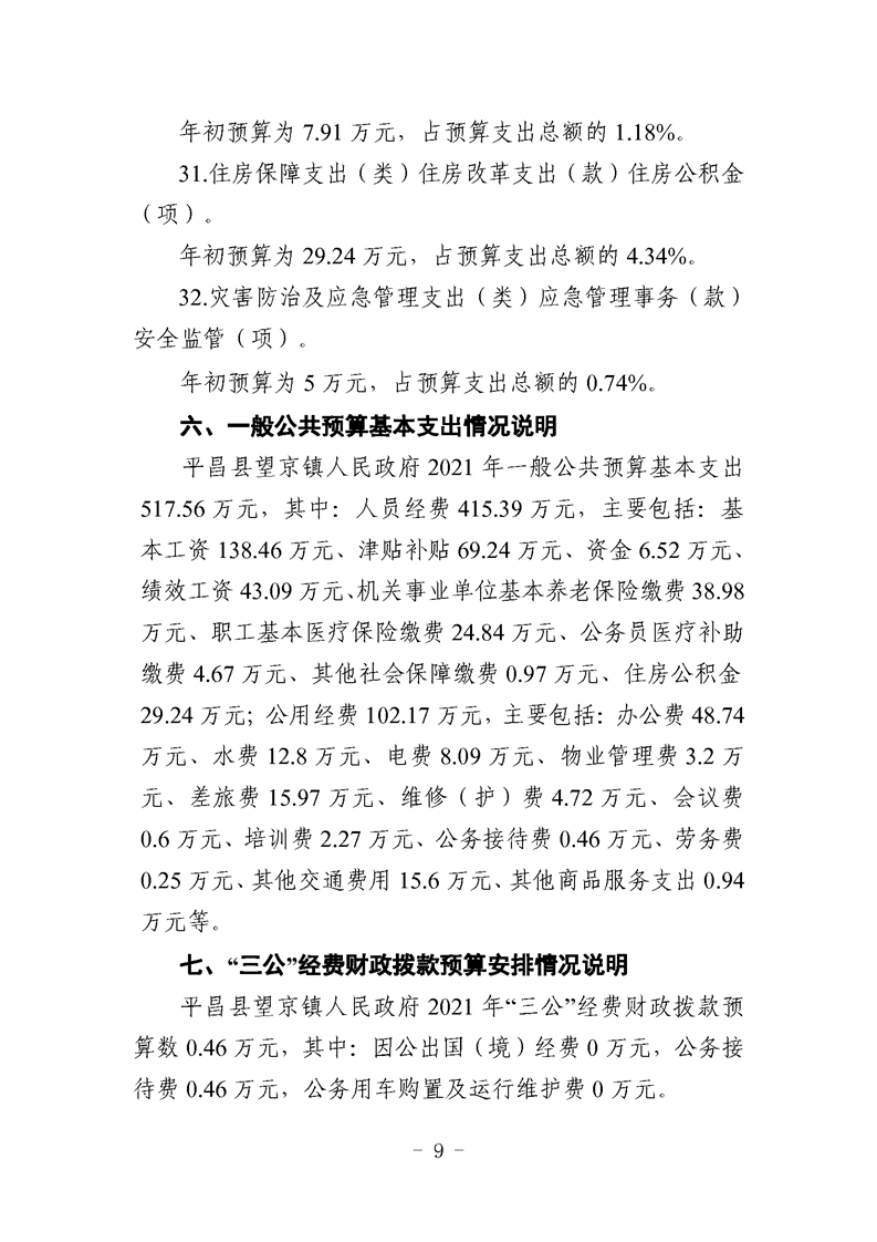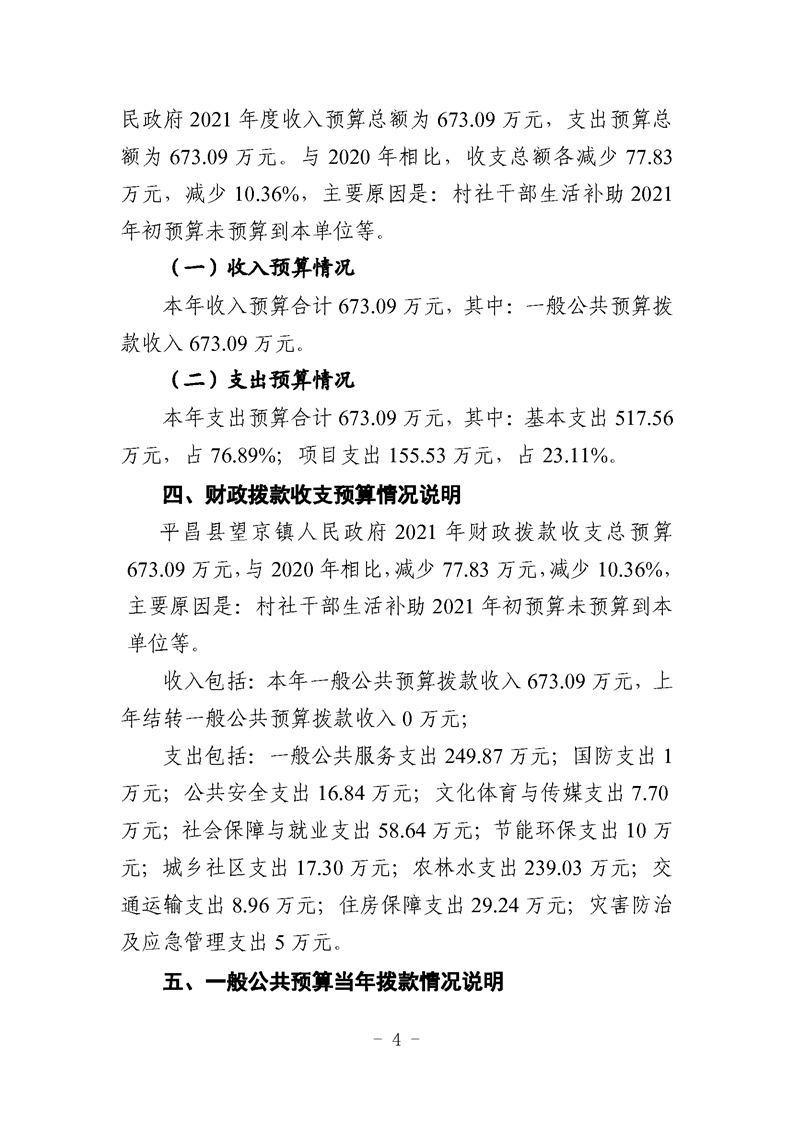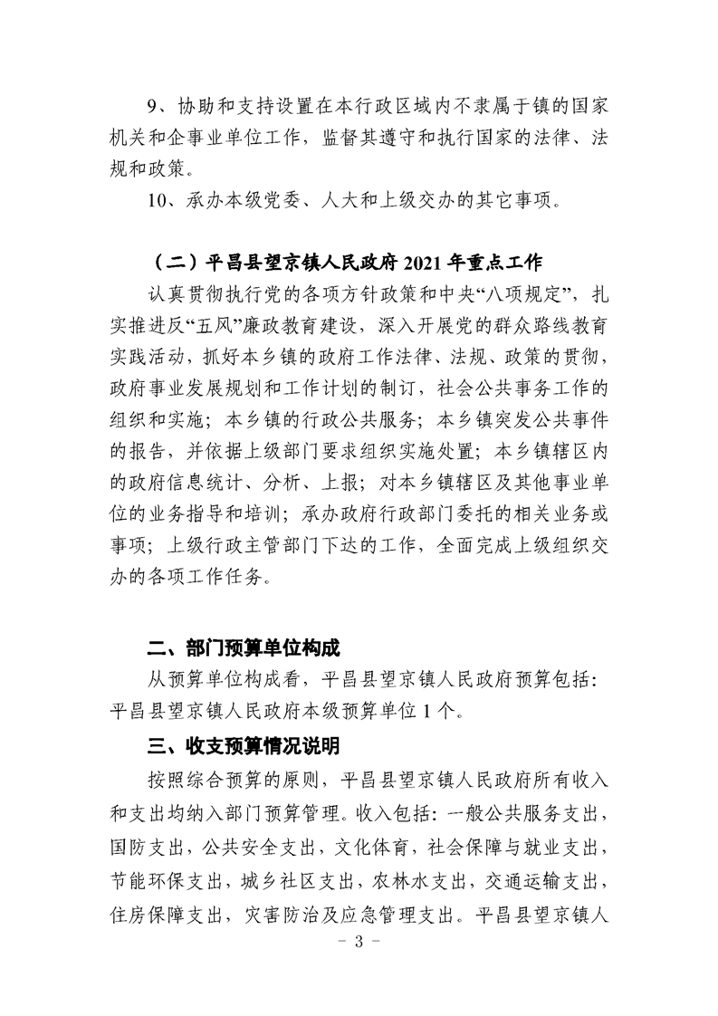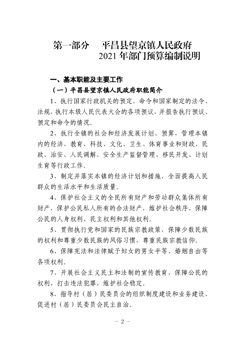 望京镇2021年部门预算编制说明