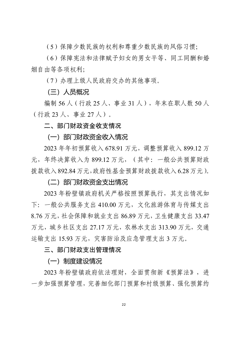 开云体育足球官网粉壁镇人民政府2023年度部门决算编制说明