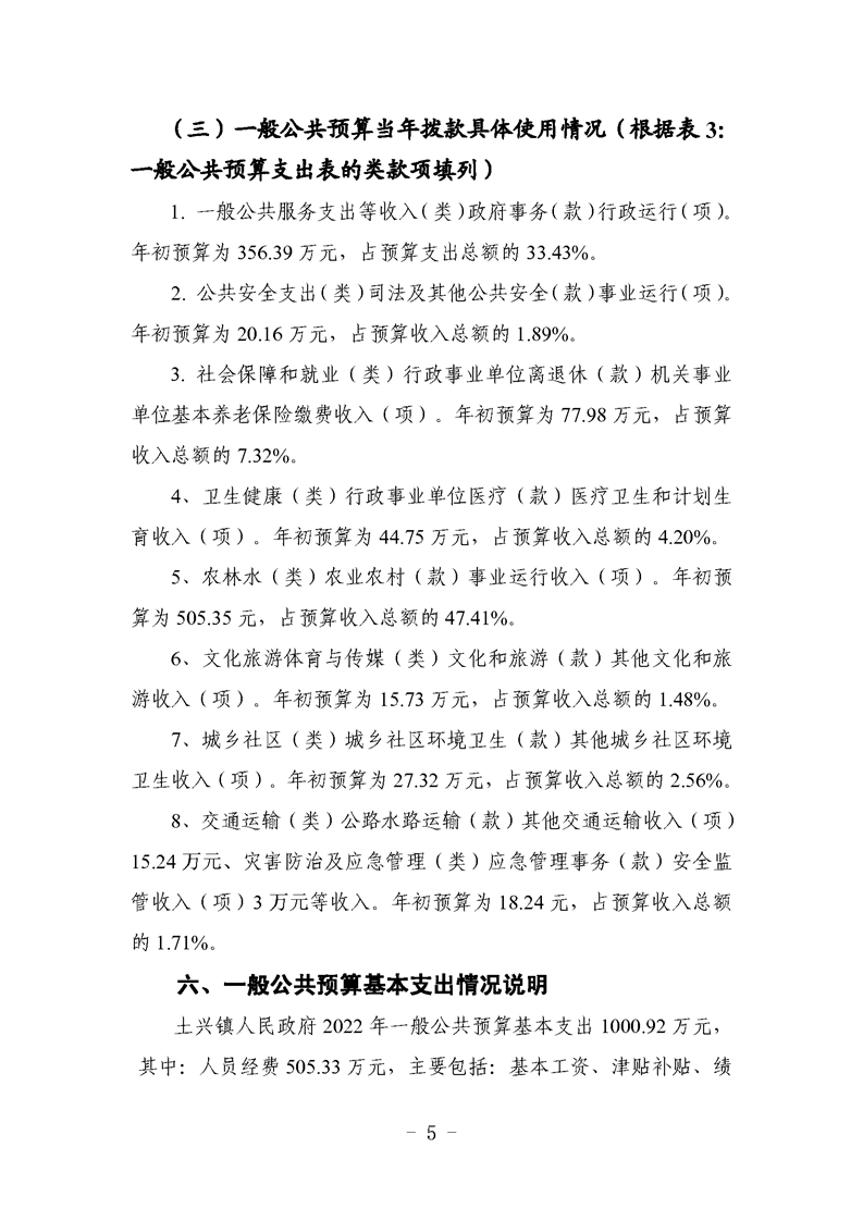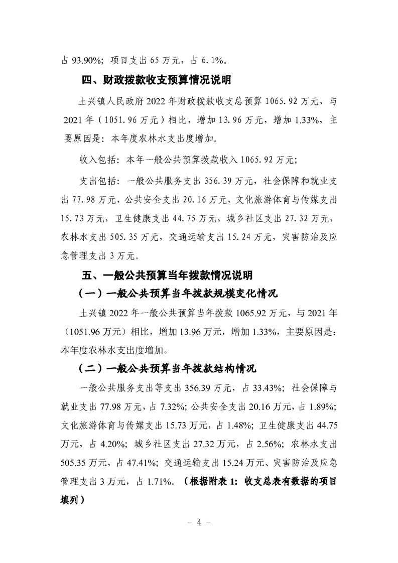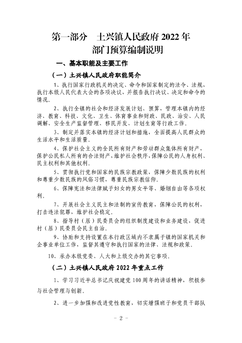 开云体育足球官网土兴镇人民政府2022年部门预算公开