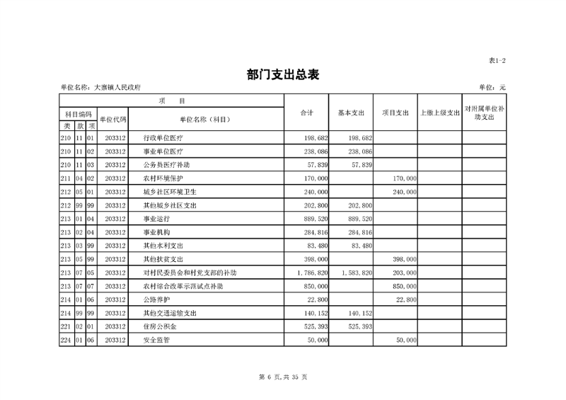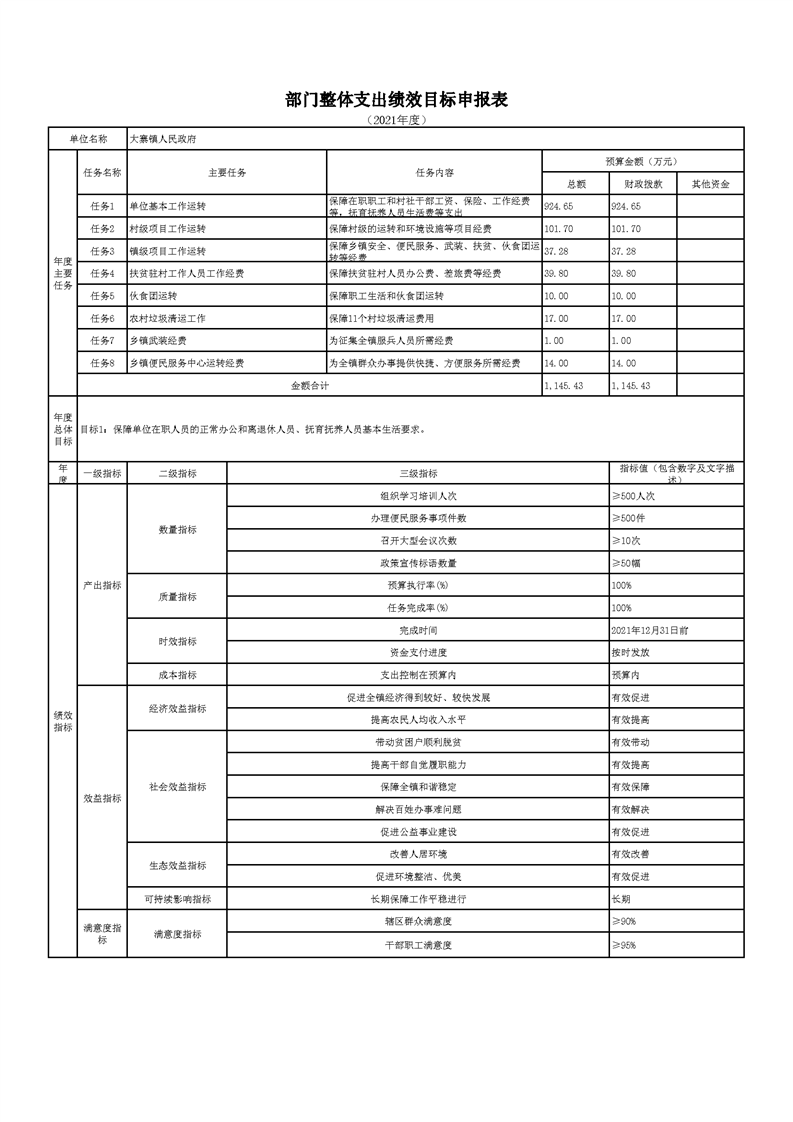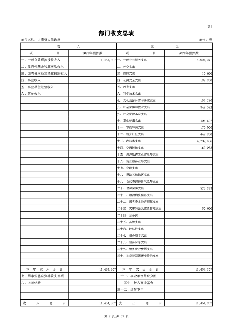 开云体育足球官网大寨镇人民政府2021年部门预算公开