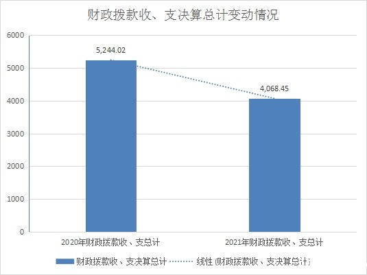 2021年财政拨款收、支总计各4068.45万元。与2020年的5244.02万元相比,财政拨款收、支总计减少1175.57万元,下降22.42%。主要变动原因是脱贫攻坚阶段初步完成,农村危旧房改造、农村道路和水利等项目建设大量减少,由此形成支出总量大大减少。