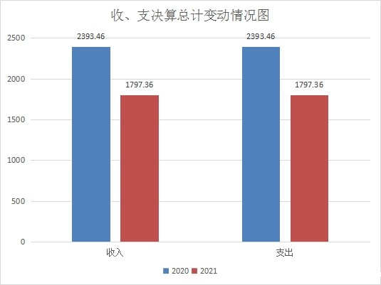 2021年度收入总计1797.36万元、支出总计1797.36万元。与2020年相比,收入总计减少596.1万元、支出总计减少596.1万元,下降24.91%。主要变动原因是脱贫攻坚阶段初步完成,农村项目建设大量减少,加之人员调离,由此形成支出总量大大减少。