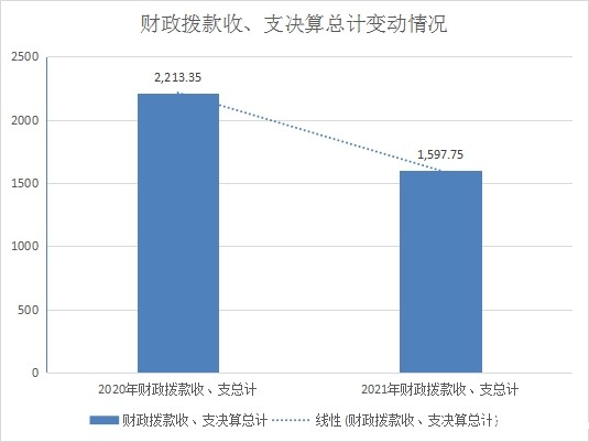 2021年财政拨款收、支总计各1597.75万元。与2020年的2213.35万元相比,财政拨款收、支总计减少615.6万元,下降27.81%。主要变动原因是脱贫攻坚阶段初步完成,农村危旧房改造、农村道路和水利等项目建设大量减少,由此形成支出总量大大减少。