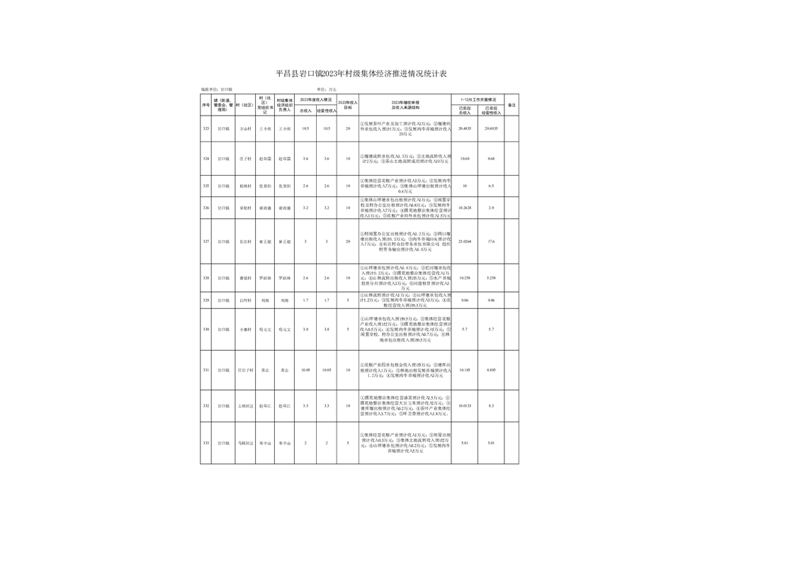开云体育足球官网岩口镇2023年村级集体经济推进情况统计表