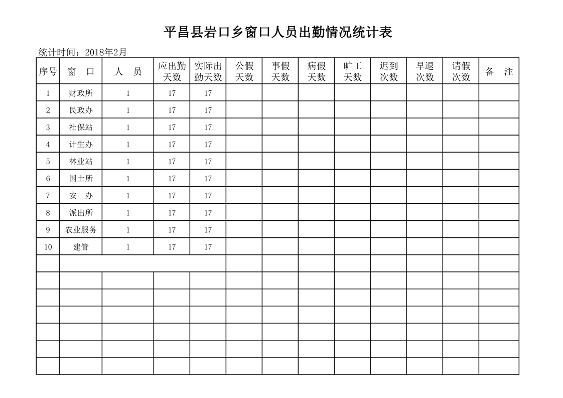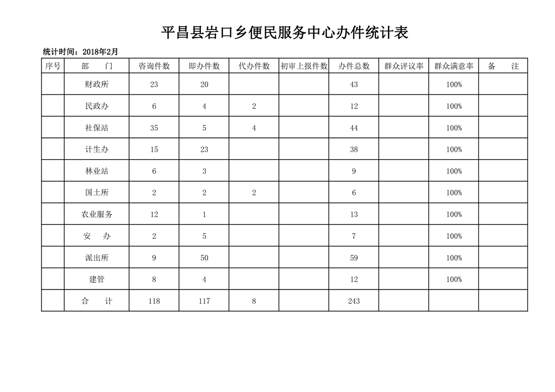 岩口乡便民服务中心2018年2月出勤办件表