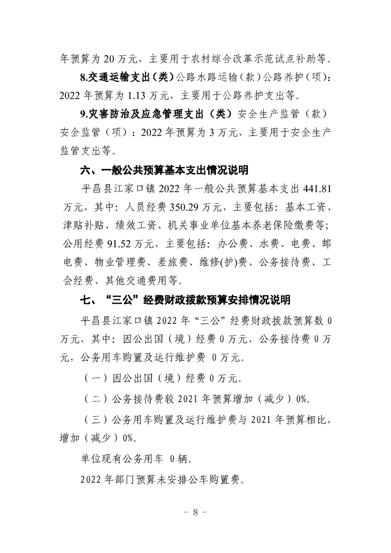 开云体育足球官网江家口镇人民政府2022年部门预算公开