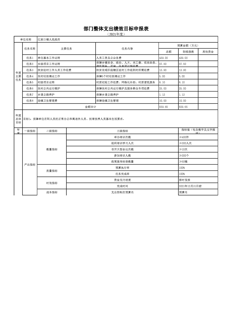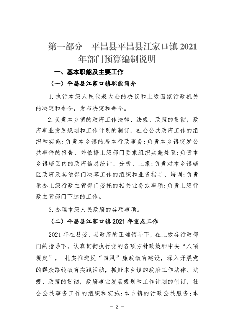 开云体育足球官网江家口镇人民政府2021年部门预算公开