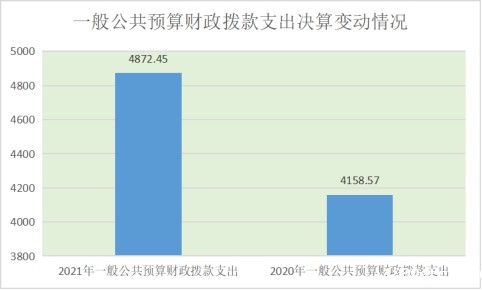 2021年一般公共预算财政拨款支出4872.45万元,占本年支出合计的99.86%。与2020年相比,一般公共预算财政拨款支出增加713.88万元,增长17.17%。主要变动原因是基本支出和项目支出增加。