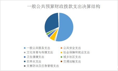 2022年一般公共预算财政拨款支出538.98万元,主要用于以下方面:一般公共服务支出290.82万元,占54%;公共安全支出1.44万元,占0.3%;文化体育与传媒支出5.89万元,占1.1%;社会保障和就业支出34.49万元,占6.4%;卫生健康支出19.24万元,占3.6%;城乡社区支出14.49万元,占2.7%;农林水支出168.48万元,占31.3%;交通运输支出1.13万元,占0.2%;灾害防治及应急管理支出3万元,占0.6%。