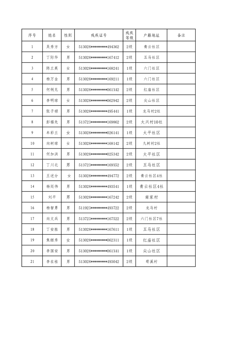 2025年1月-5月重度残疾人申请护理补贴对象统计表