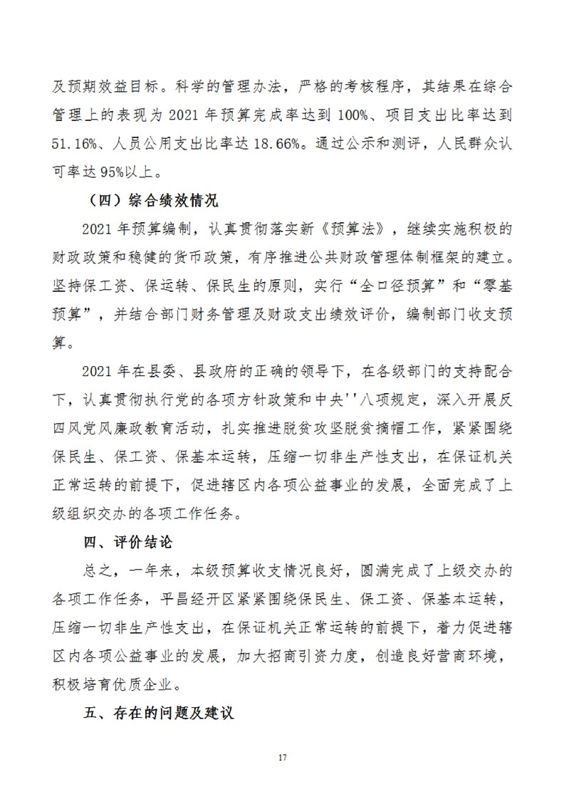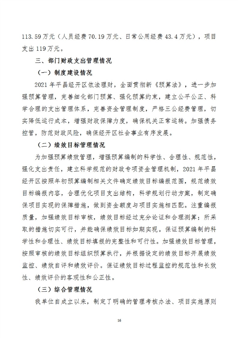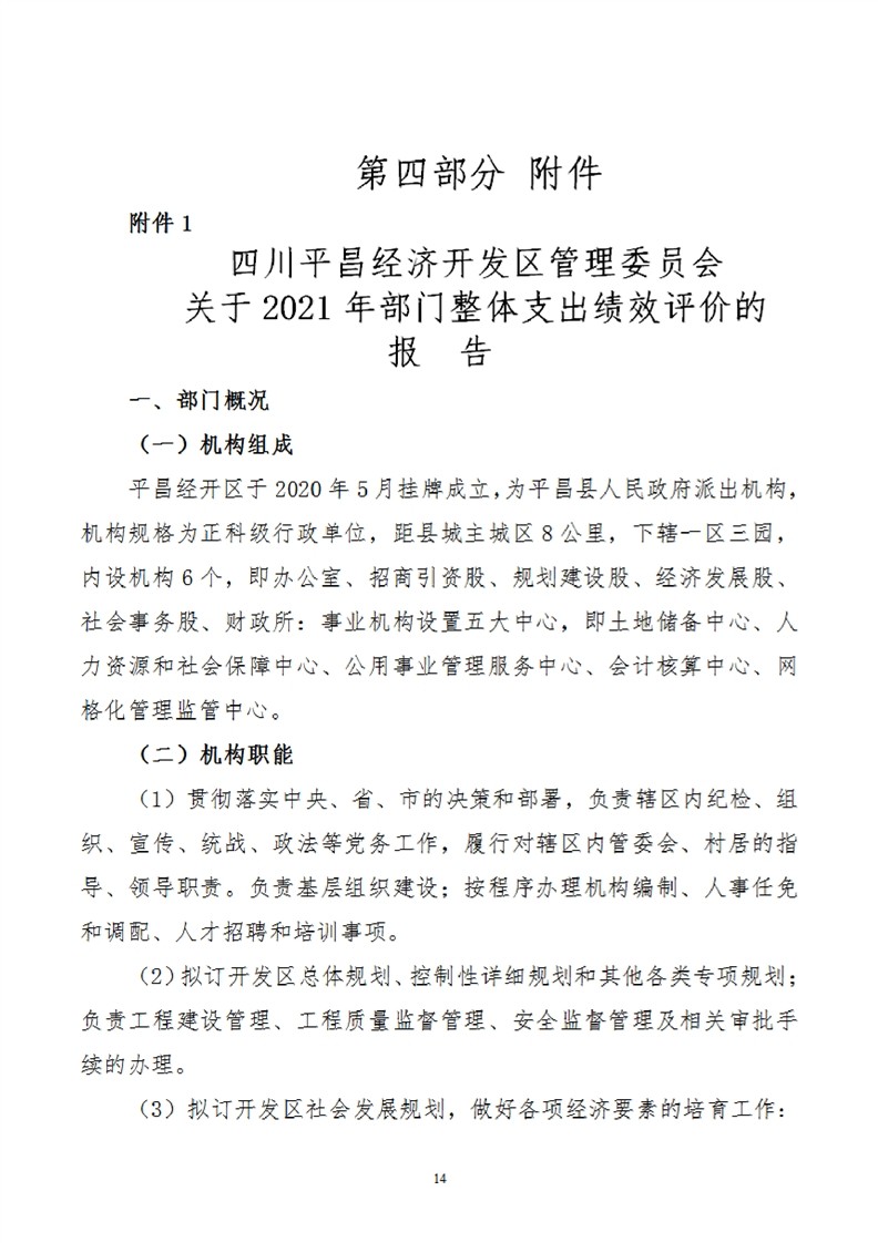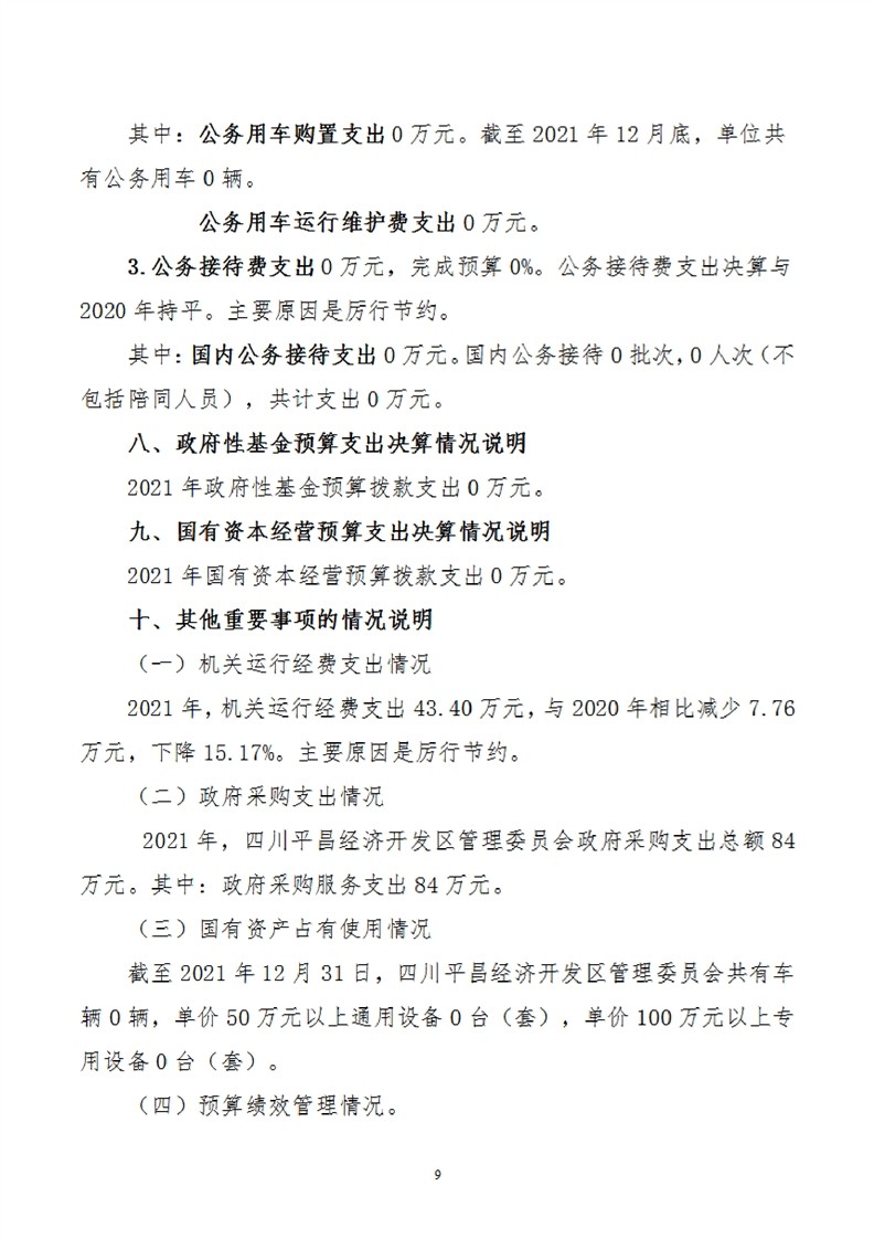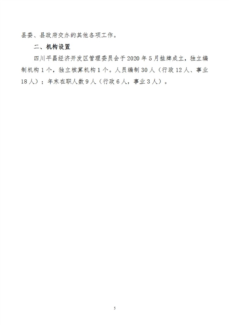 四川平昌经济开发区管理委员会2021年度部门决算公开