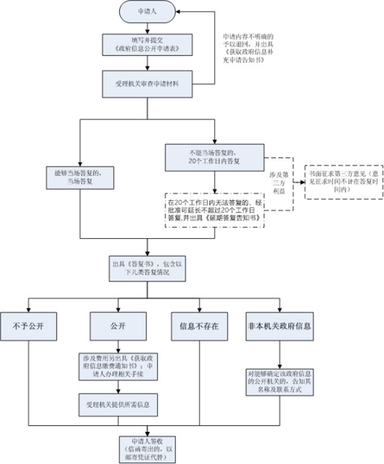 2.办理期限:本机关收到政府信息公开申请,除能够当场答复的外,自收到申请之日起20个工作日内予以答复;如需延长答复期限的,经本机关政府信息公开工作机构负责人同意,并书面告知申请人,延长的期限最长不超过20个工作日。