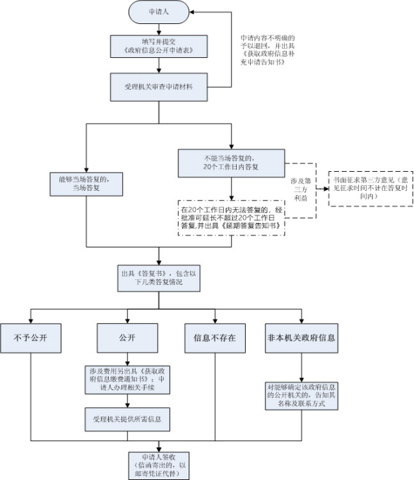 2.办理期限:本机关收到政府信息公开申请,除能够当场答复的外,自收到申请之日起20个工作日内予以答复;如需延长答复期限的,经本机关政府信息公开工作机构负责人同意,并书面告知申请人,延长的期限最长不超过20个工作日。