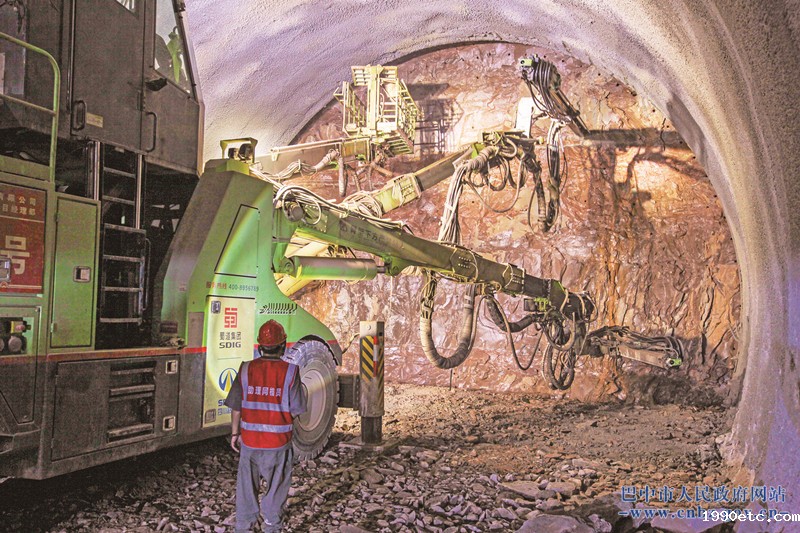 台车作业 C3项目(平昌)平昌隧道左洞全长5639米,采用三臂凿岩台车作业已掘进5200米。
