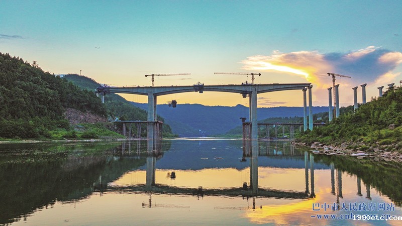 横跨南北 C4项目(平昌)云台通江河特大桥主拱净跨380米,现已进入外包混凝土浇筑阶段。