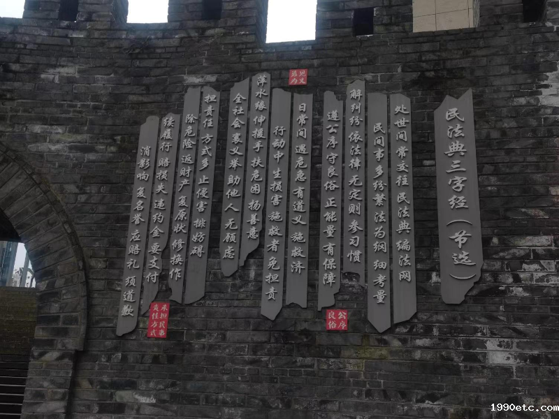 在中央城邦小区,植入了法治历史长廊,法治文化墙,法字雕刻,法治花草牌等元素,宣传中国从古至今10位著名法学家提倡的法治思想、国内外法治名言和民法典等法律知识。