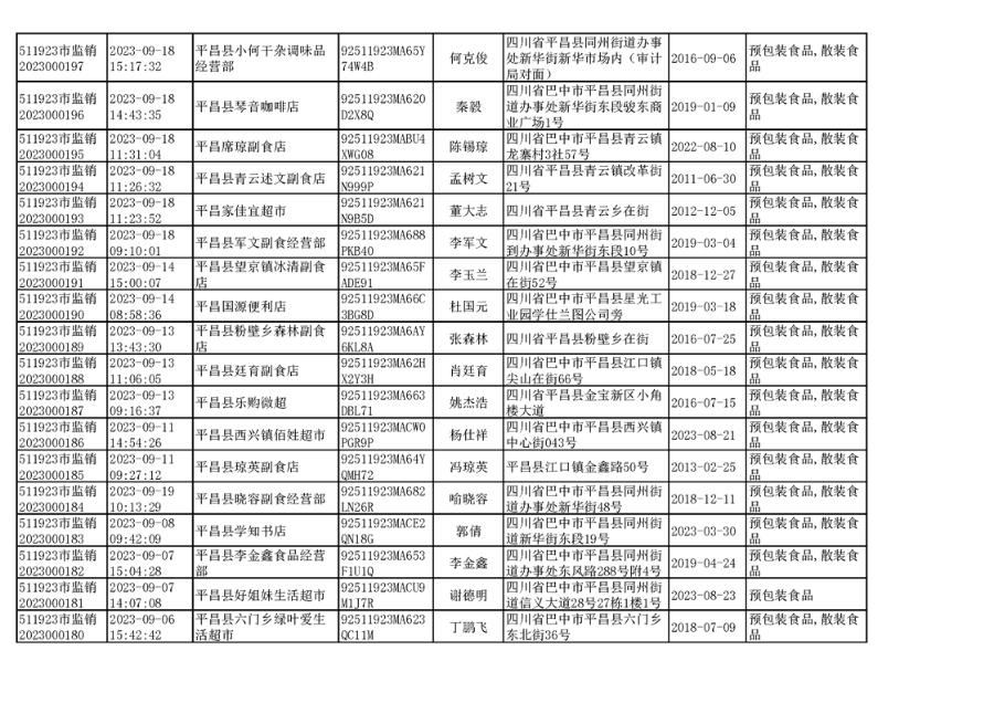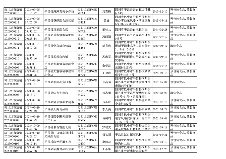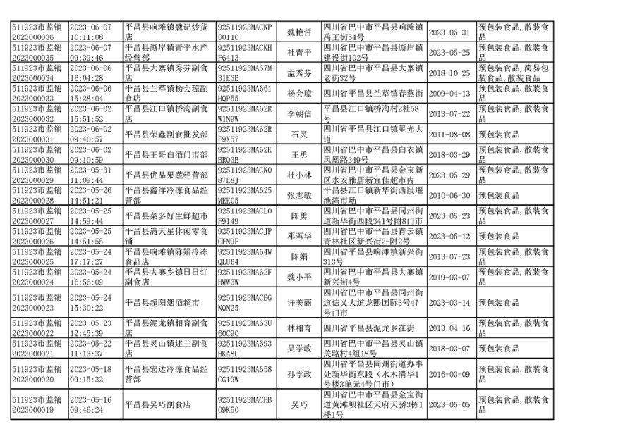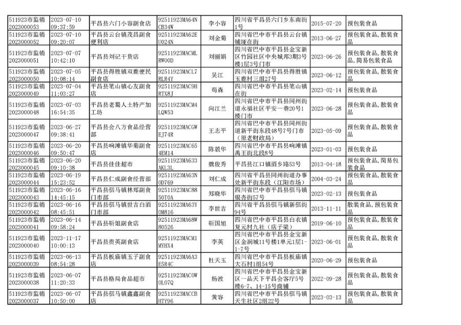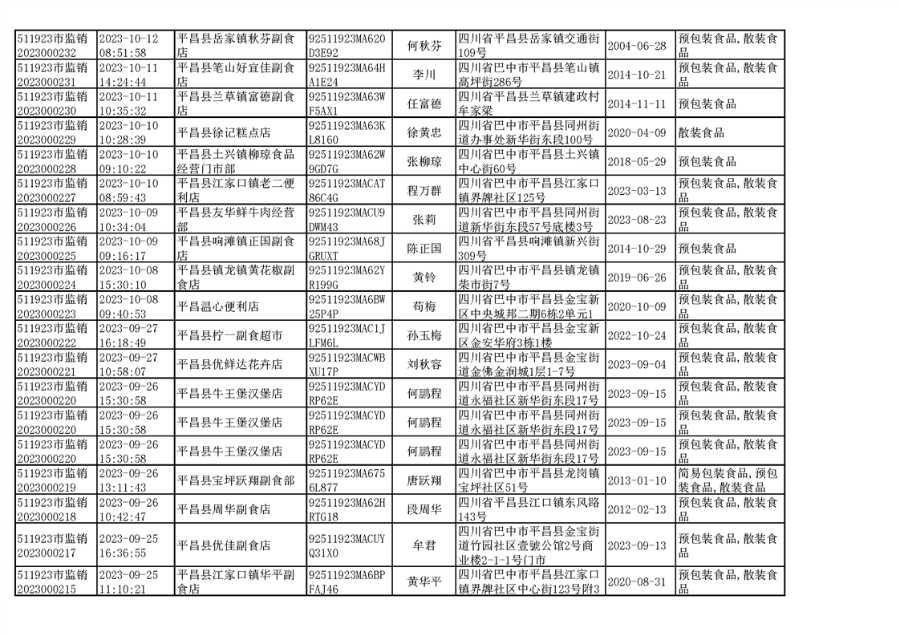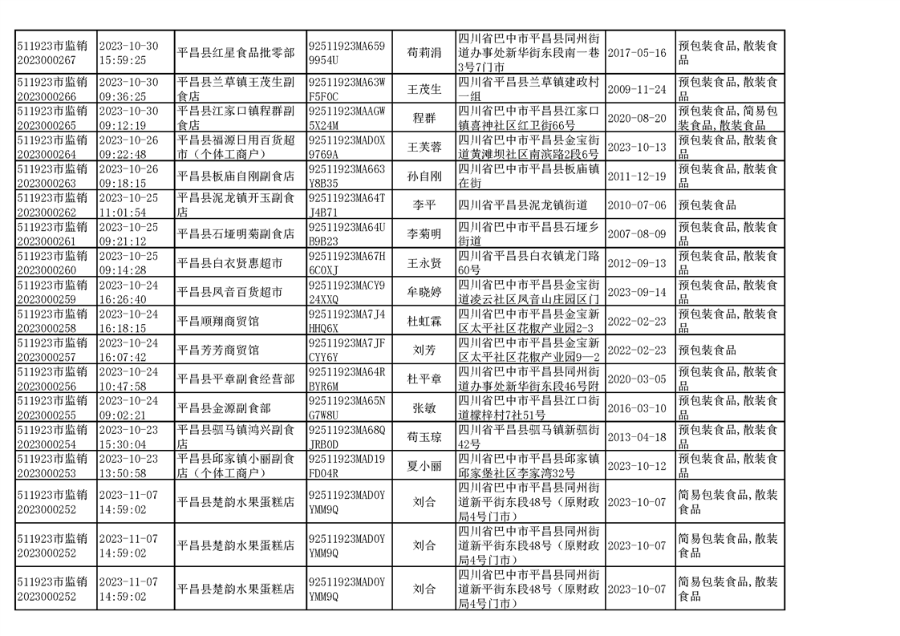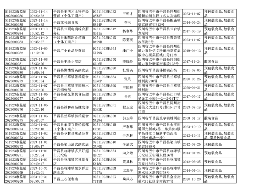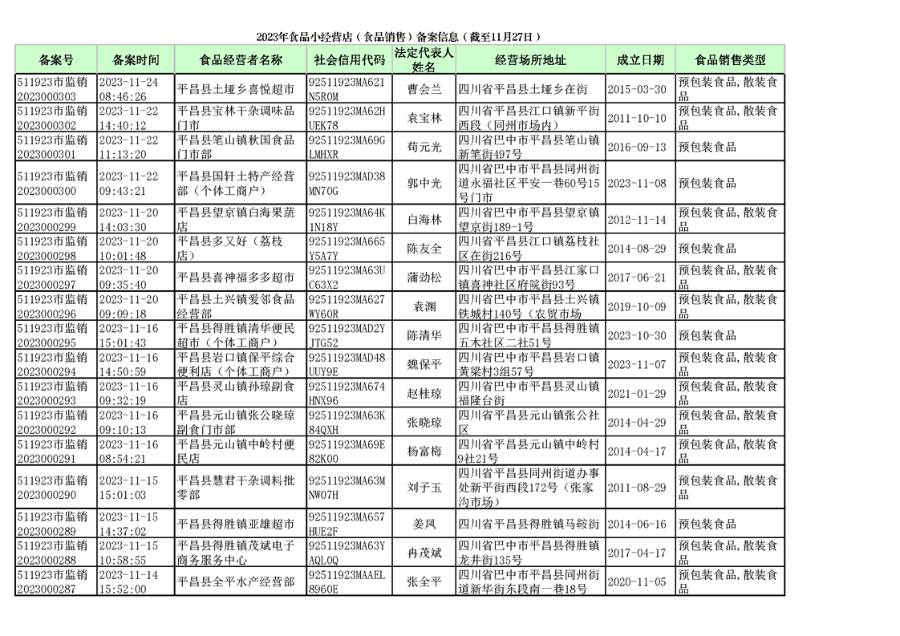 2023年食品小经营店(食品销售)备案信息(截至11月27日)