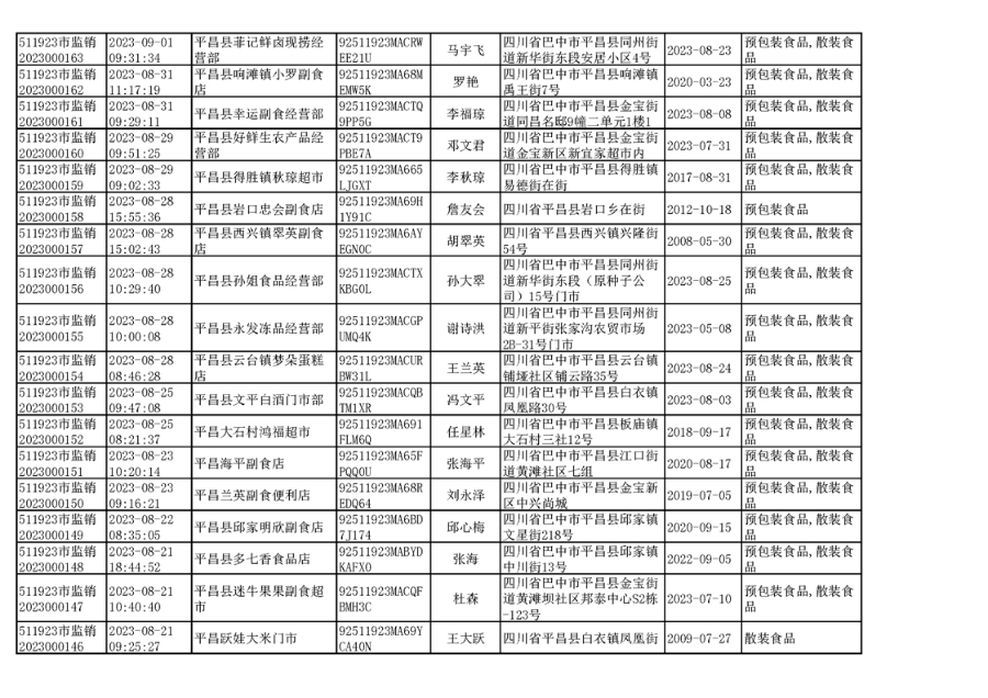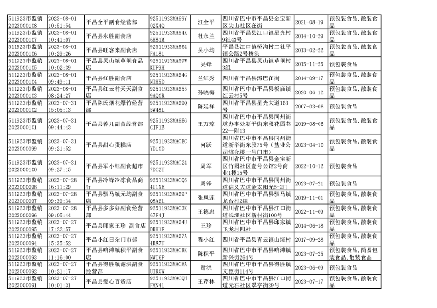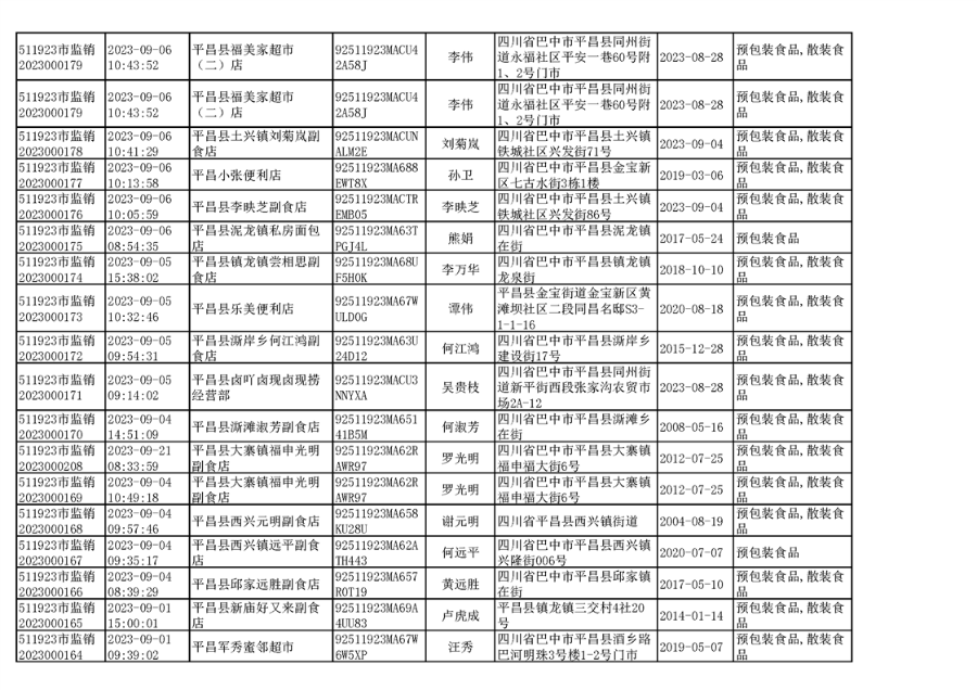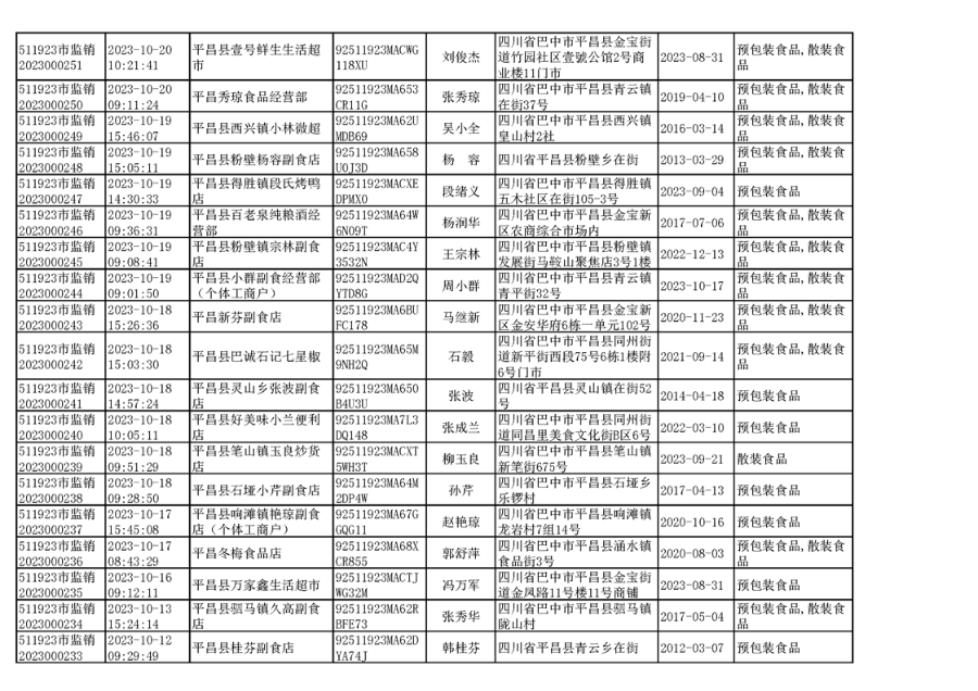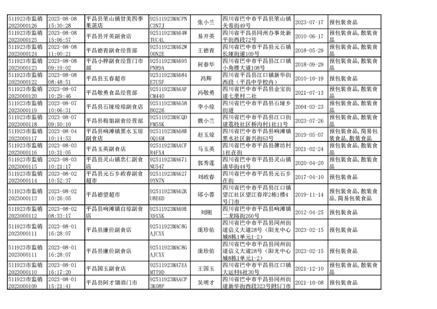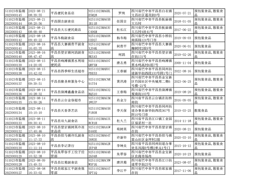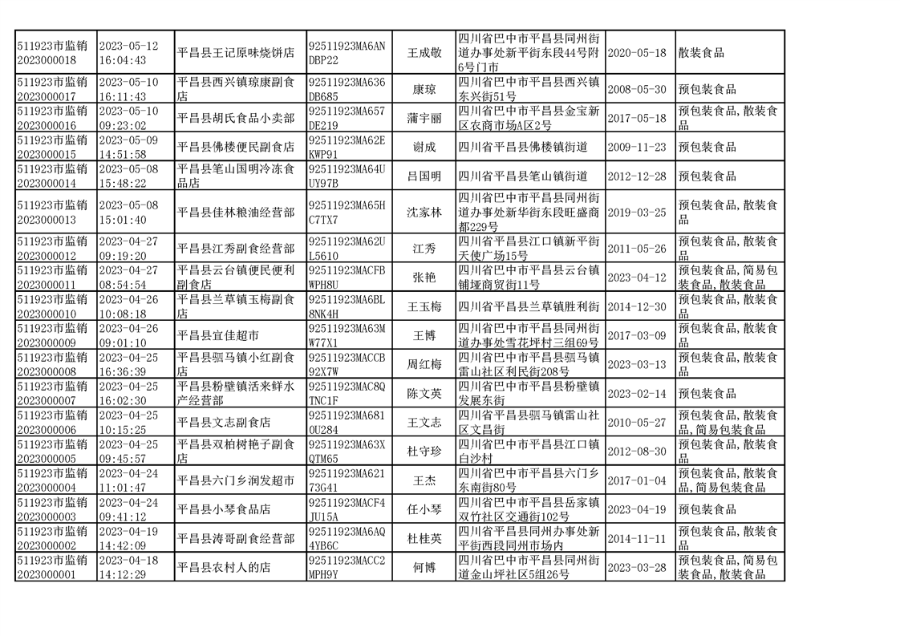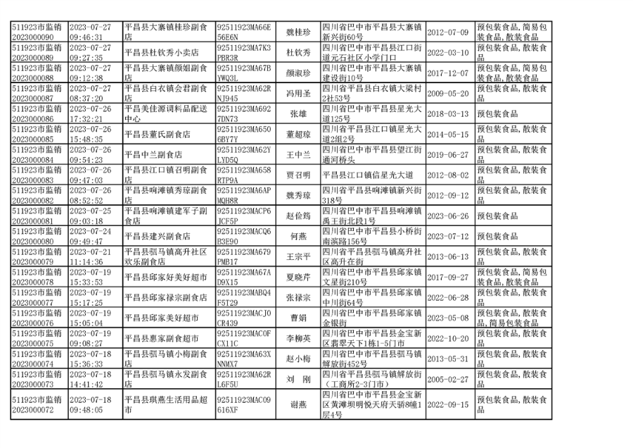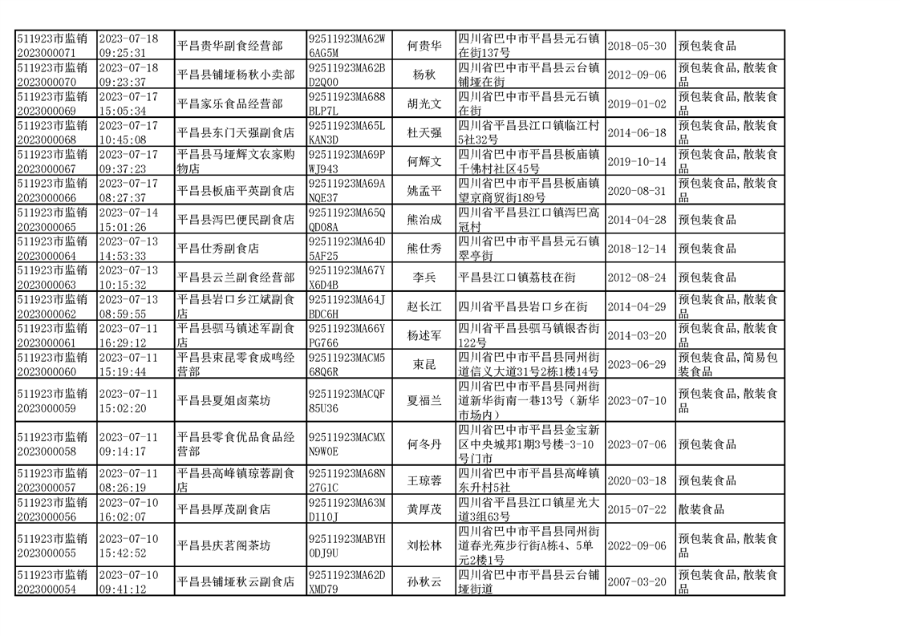 2023年食品小经营店(食品销售)备案信息(截至11月27日)
