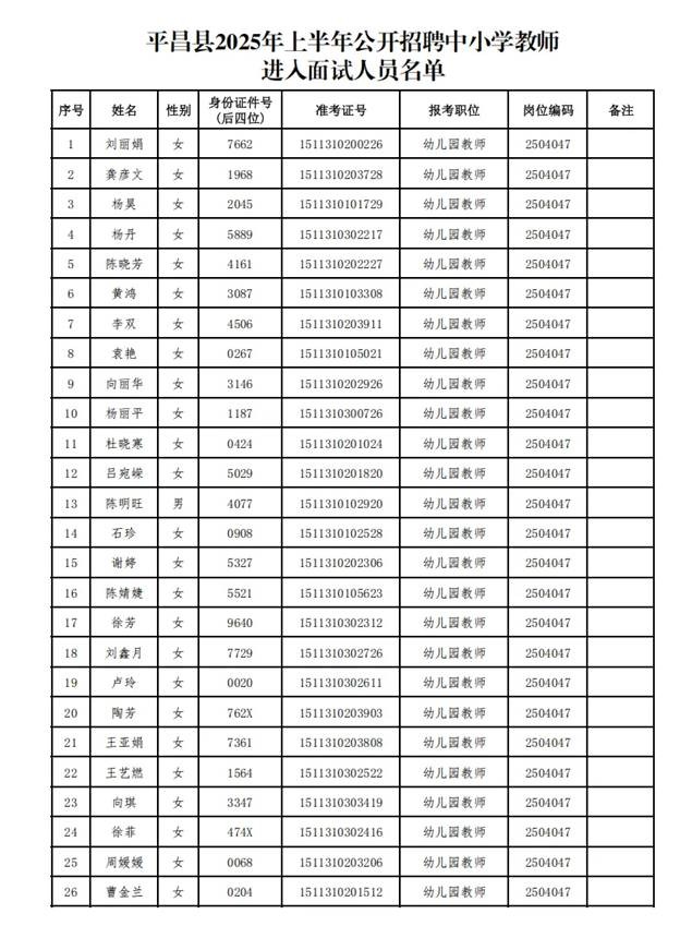 根据《巴中市2025年上半年公开考试招聘中小学教师的公告》规定,开云体育足球官网2025年上半年公开考试招聘中小学教师工作即将进入面试环节。现将进入面试人员名单暨面试相关事宜公告如下。