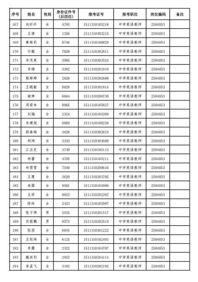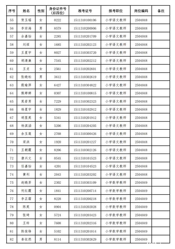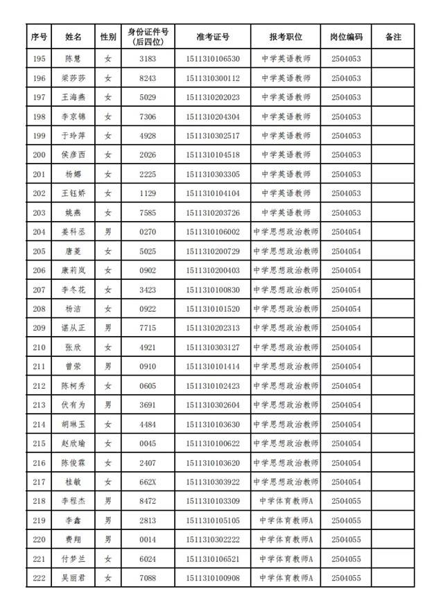 面试资格审查和面试递补资格审查合格的考生确定为进入面试人员,具体名单详见附件。