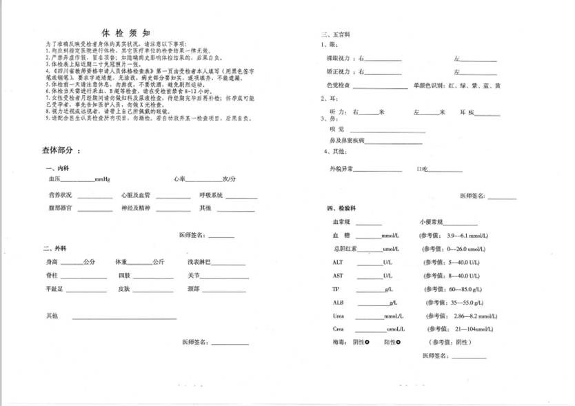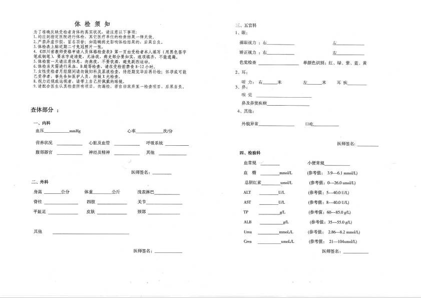 附件:1.四川省教师资格申请人员体格检查表(普通类)
