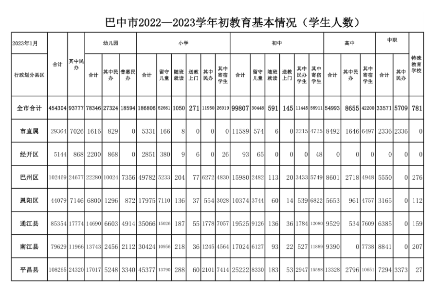 2022—2023学年初教育基本情况(学生人数)