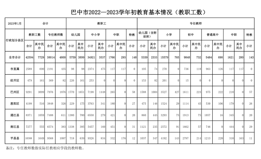 2022—2023学年初教育基本情况(教职工数)