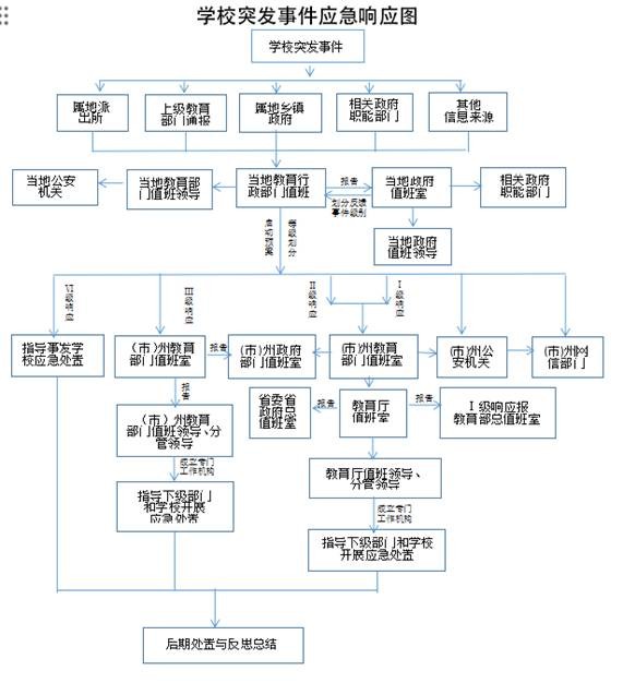 学校突发事件应急响应图、应急处置流程图