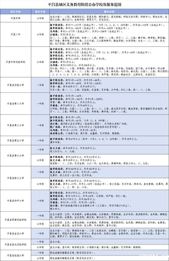 2025年义务教育阶段新生入学平昌城区公办学校招生范围