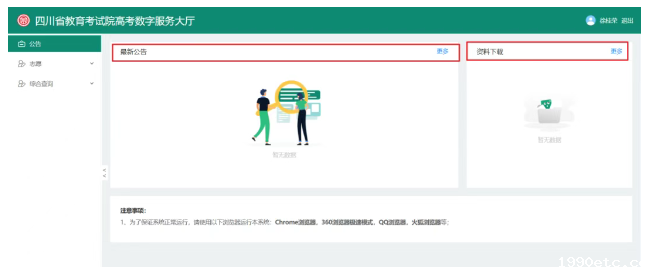 登录完成后,可在首页查看“最新公告”和“资料下载”等。