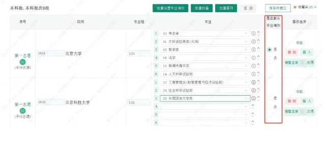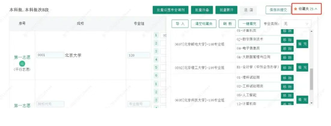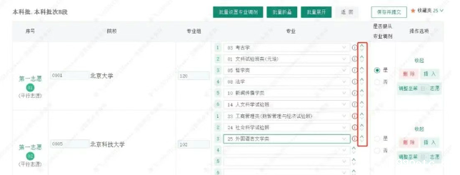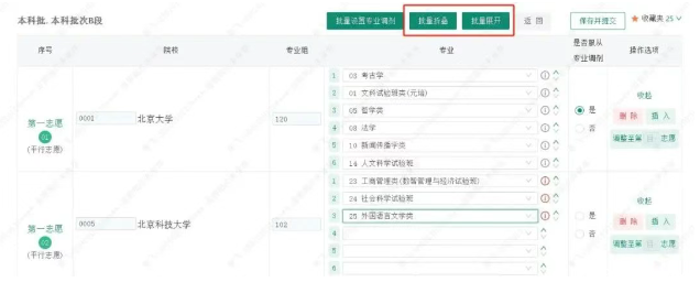 点击“批量折叠”或“批量展开”按钮,可快速折叠或展开所有志愿栏,方便查阅。
