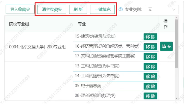 【刷新】:点击“刷新”按钮,可更新收藏夹内的志愿信息显示,确保看到的是最新状态。