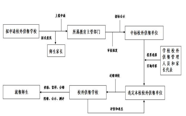 所属教育主管部门统一组织招标,选定中标校外供餐单位,向社会公布中标的校外供餐单位名单。