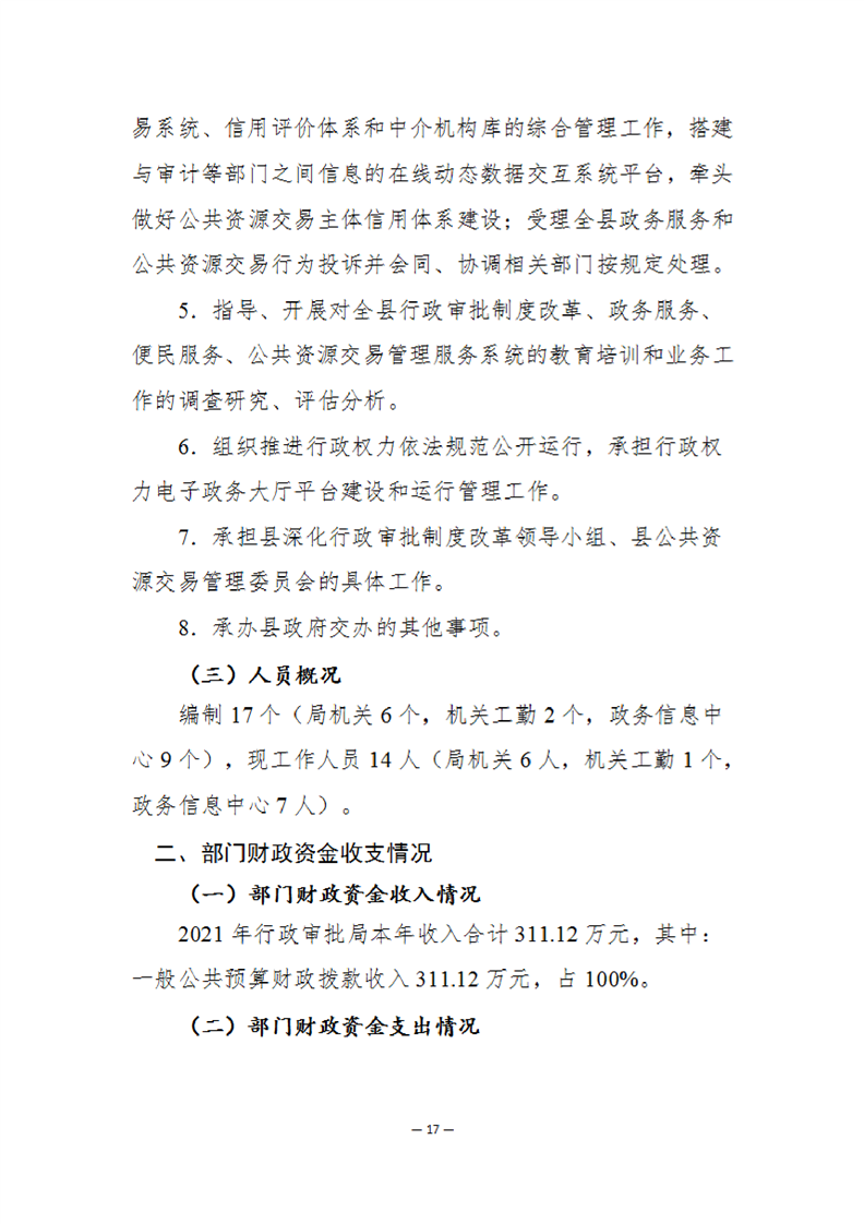开云体育足球官网行政审批局2021年度部门决算公开