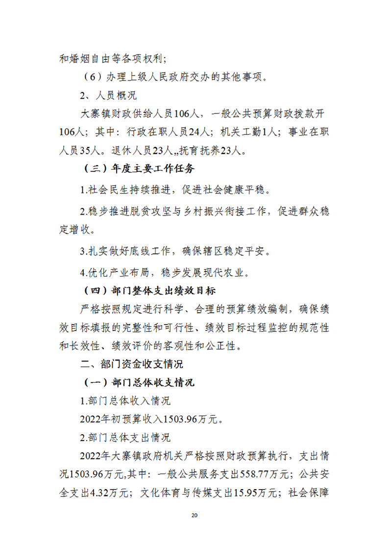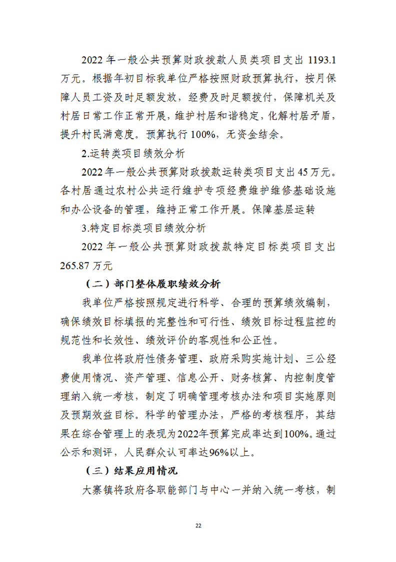 开云体育足球官网大寨镇人民政府2022年度部门决算公开