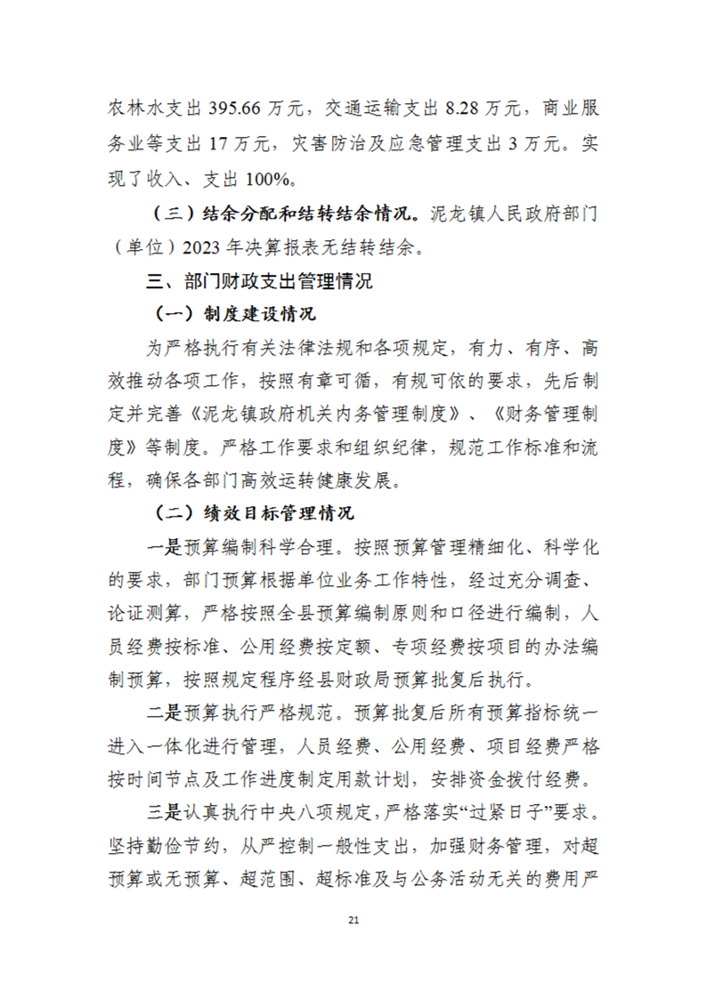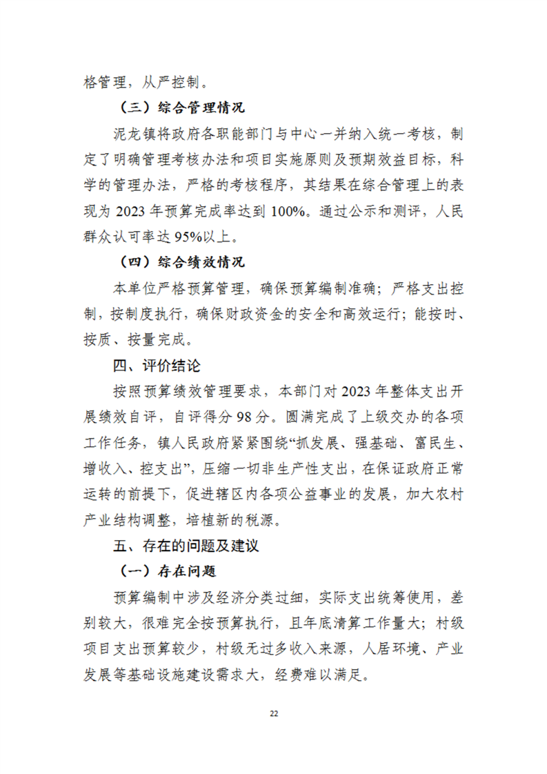 开云体育足球官网泥龙镇人民政府2023年度部门决算公开