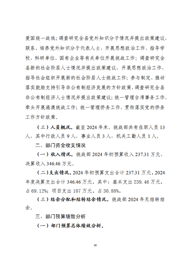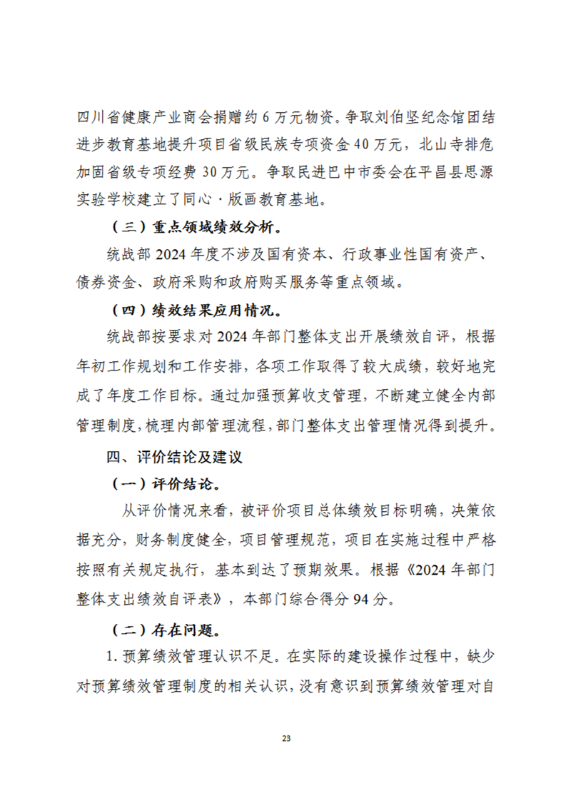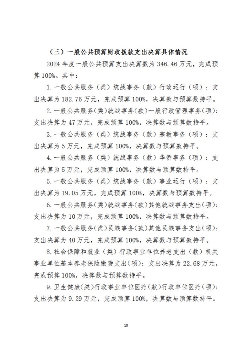 中国共产党开云体育足球官网委员会统战部2024年度部门决算公开