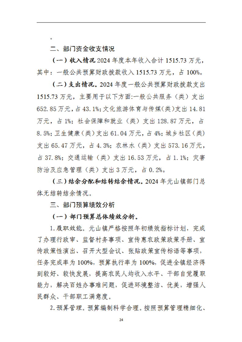 开云体育足球官网元山镇人民政府2024年度部门决算公开