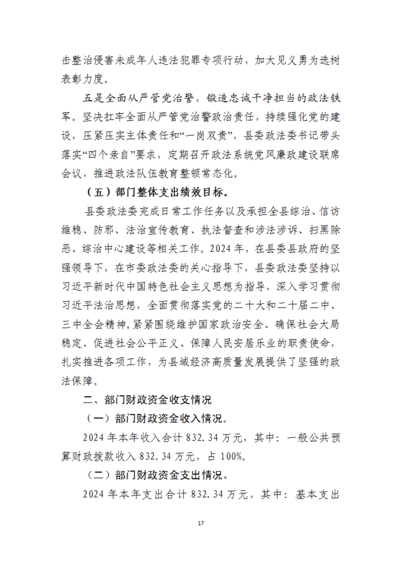 中国共产党开云体育足球官网委员会政法委员会2024年度部门决算公开