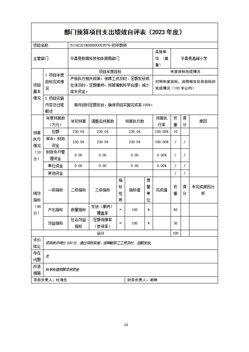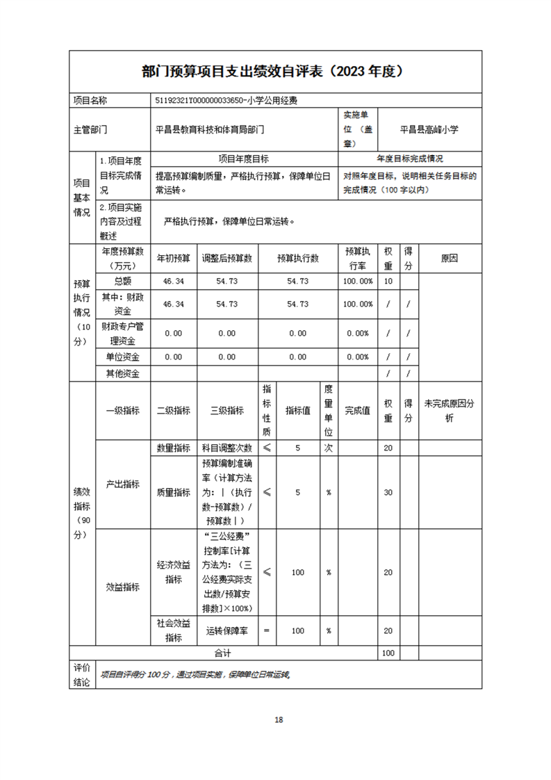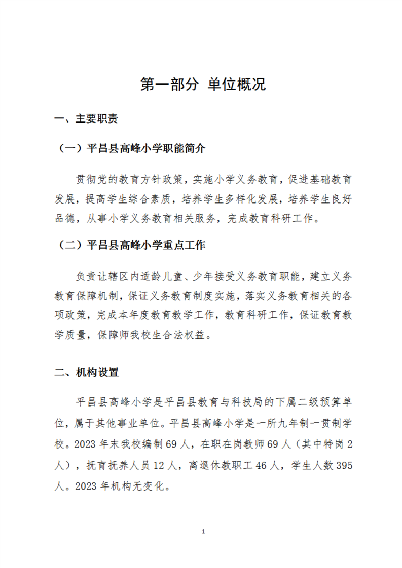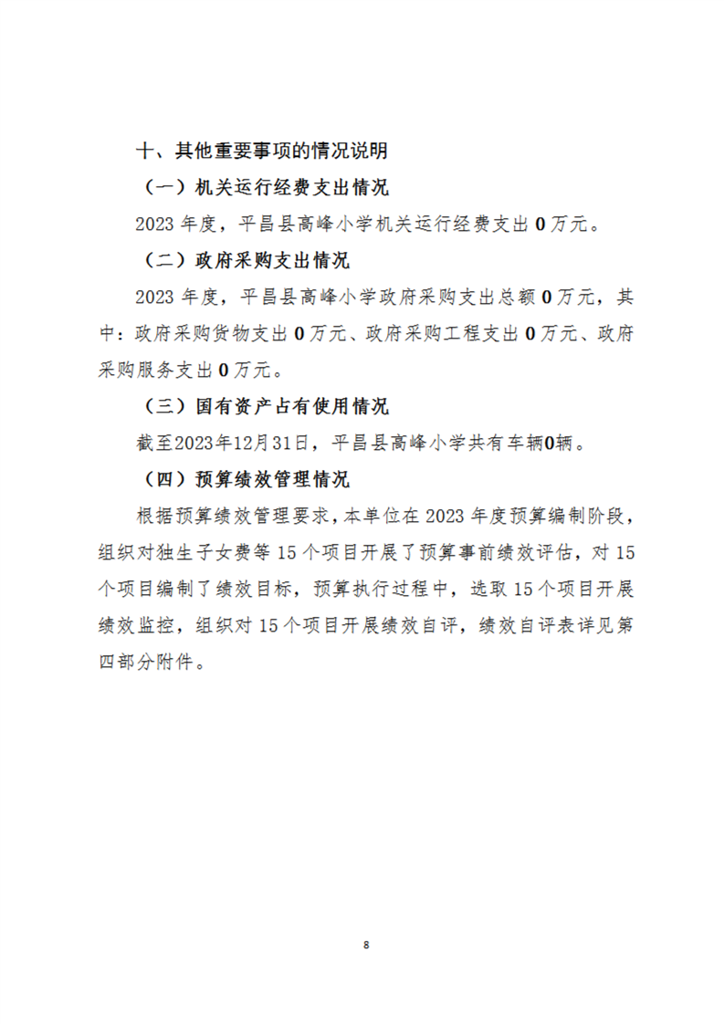 开云体育足球官网高峰小学2023年度单位决算公开