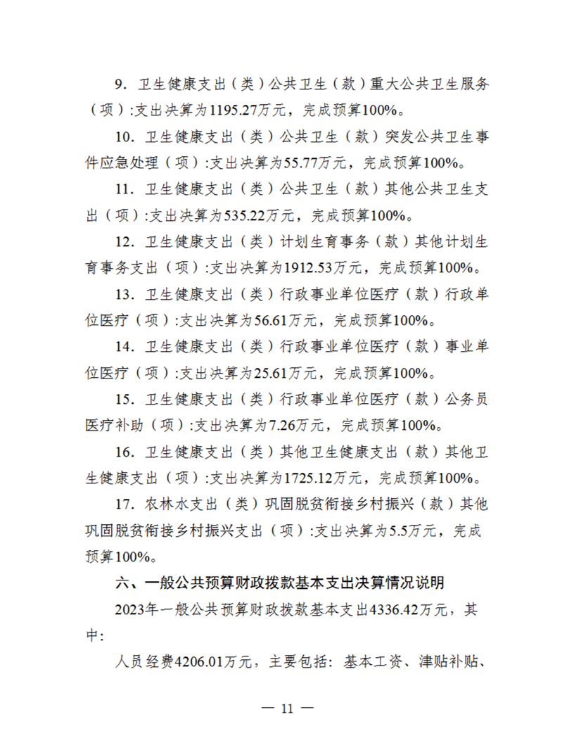 开云体育足球官网卫生健康局2023年度单位决算公开