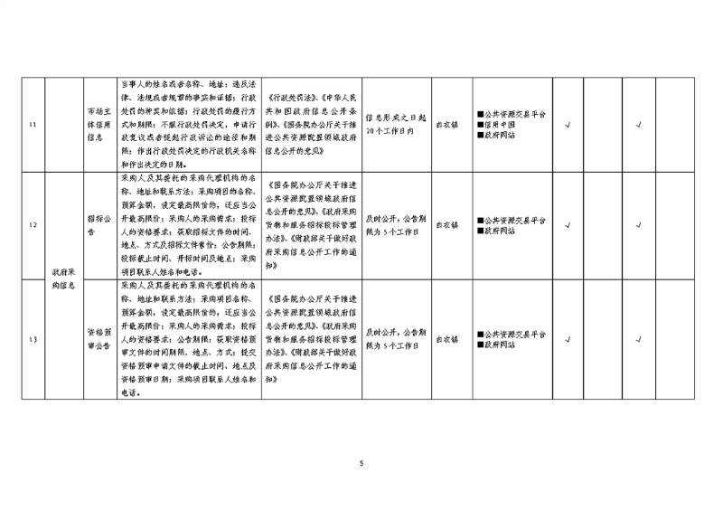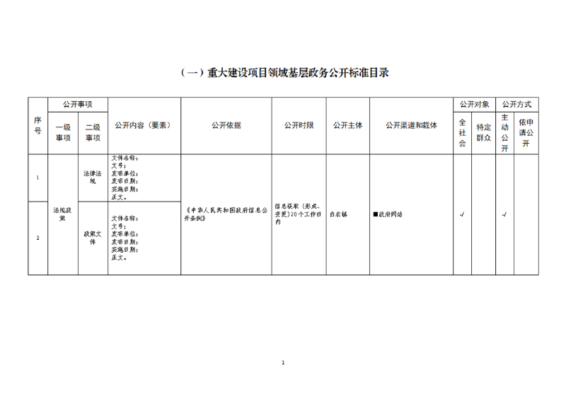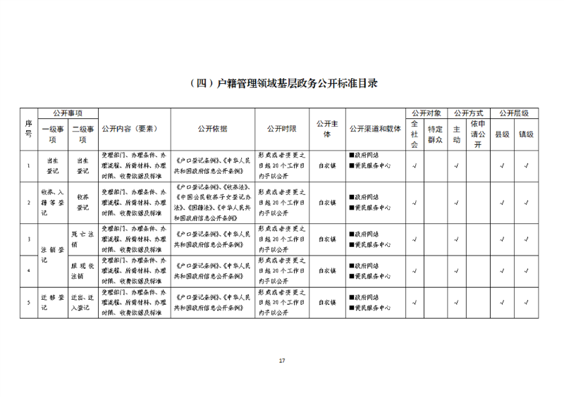 开云体育足球官网白衣镇试点领域基层政务公开标准目录