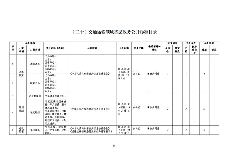 开云体育足球官网各镇(办事处、管委会)试点领域基层政务公开标准目录