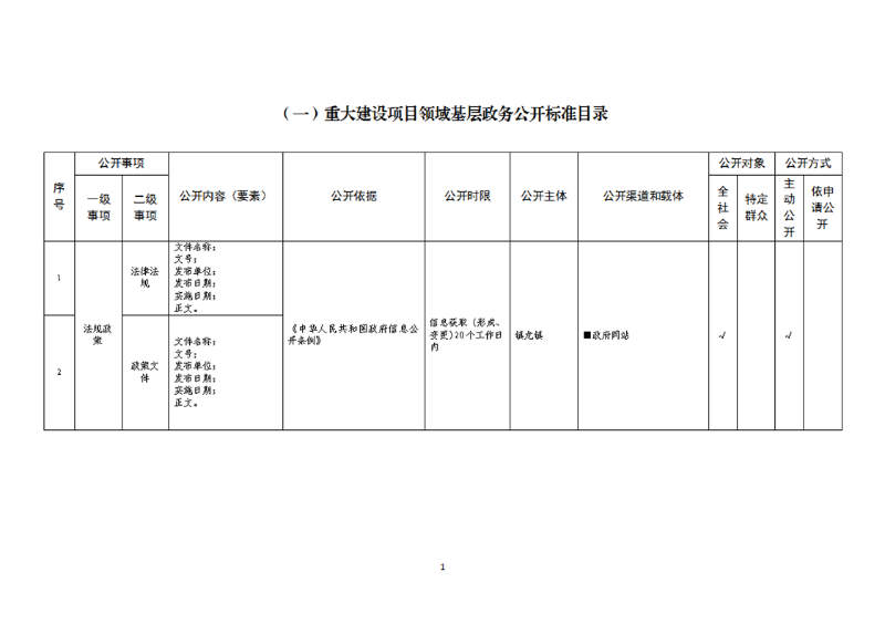 开云体育足球官网各镇(办事处、管委会)试点领域基层政务公开标准目录
