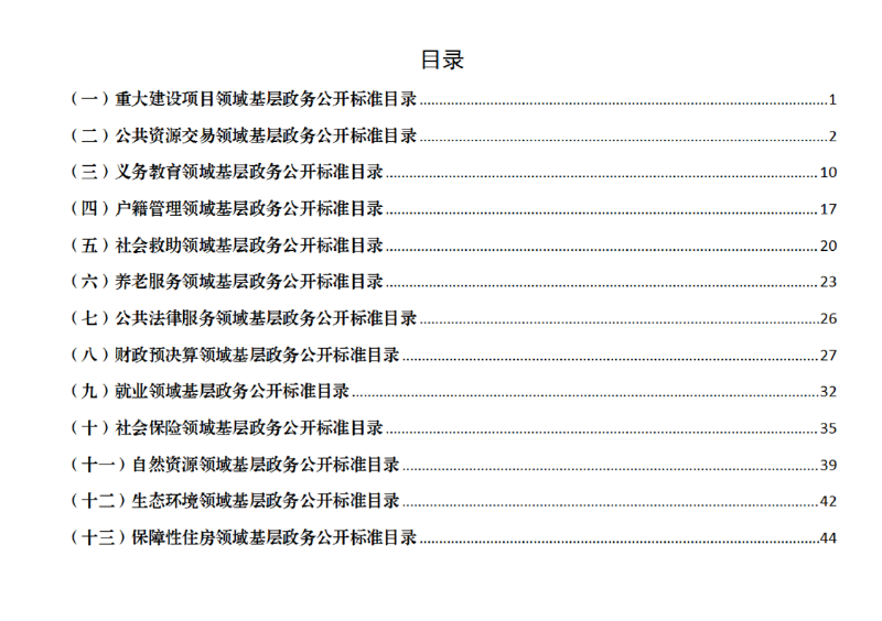 开云体育足球官网试点领域基层政务公开标准目录