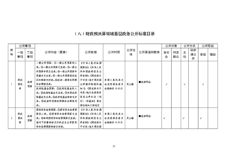 开云体育足球官网灵山镇试点领域基层政务公开标准目录