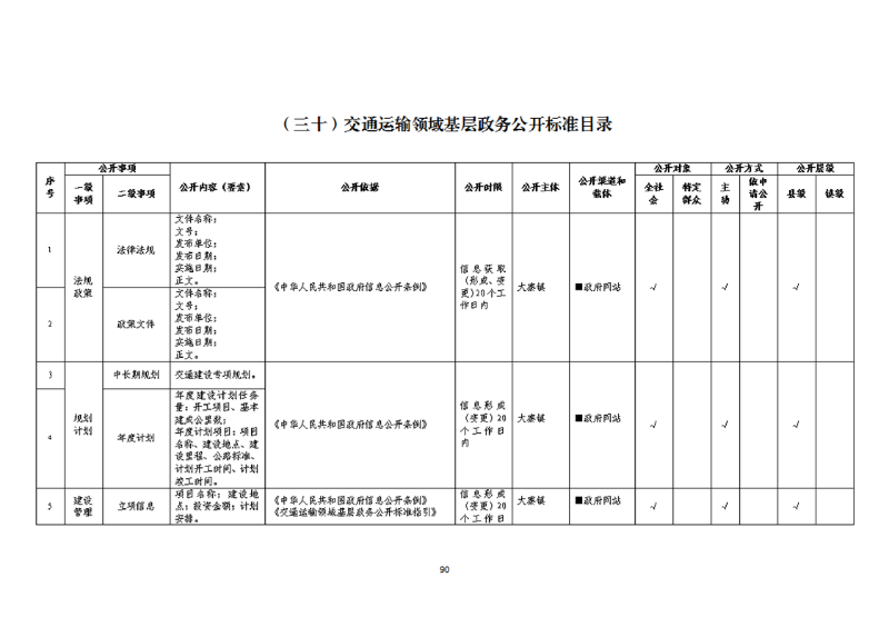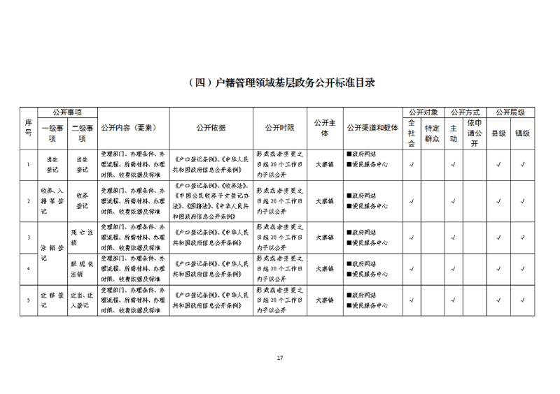 开云体育足球官网各镇(办事处、管委会)试点领域基层政务公开标准目录