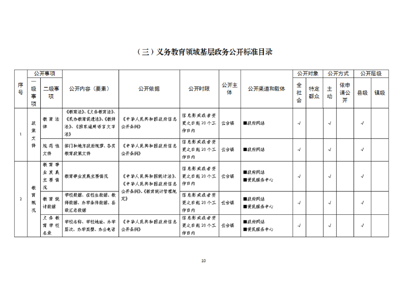 开云体育足球官网试点领域基层政务公开标准目录